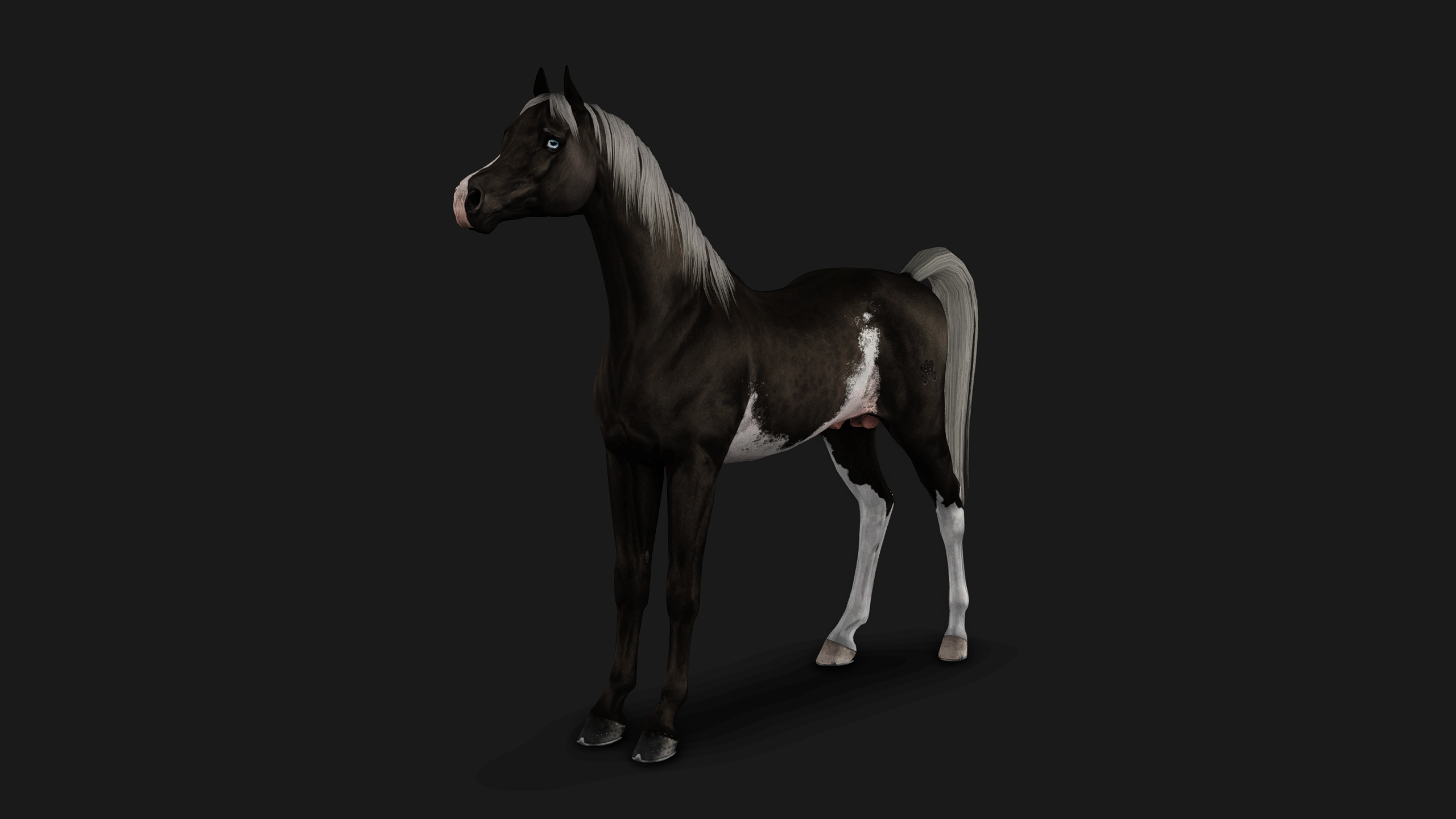 Black Tobiano Shire Horse with W20